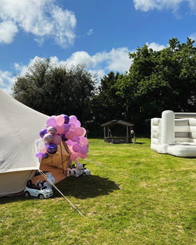The ultimate summer garden package - enjoy our luxury soft play safe from the glare of the sun or any summer showers in our beautiful 5m classic bell tent which will have a welcoming balloon garland in colours of your choice, accompanied by our classic grey and white toddler bouncy castle. This really is the ultimate garden party package which is sure to give the wow effect.